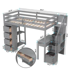 Twin Size Loft Bed With Staircase And Built-in Desk – ModernLuxe