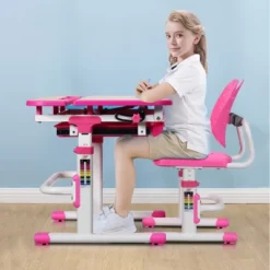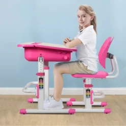 Costway Adjustable Children Study Desk Chair Set W/Winged Backrest Pink