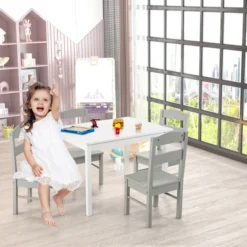 Costway Kids 5 Piece Table Chair Set Pine Wood Multicolor Children Play Room Furniture
