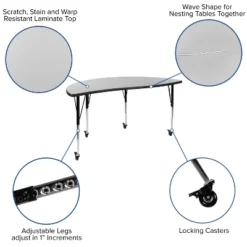 Emma And Oliver Mobile 60″ Half Circle Wave Collaborative Grey Adjustable Height Activity Table