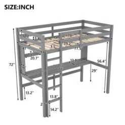 Twin Size Metal Loft Bed With Built-in Desk And Shelves – ModernLuxe