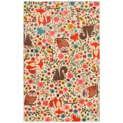 Friendly foxes, owls, squirrels, ladybugs, butterflies, birds and bumble bees play alongside fresh florals in the whimsical multicolored design of Mohawk Homes Enchanted Forest Area Rug. Available in 5×8, 8×10, and 10×14, this area rug is ideal for kids spaces, bedrooms, nurseries, playrooms, classrooms and more. Reenergize your space with radiant color and original artwork digitally constructed over a plush canvas of Mohawk Homes exclusive ecofriendly EverStrand, a premium synthetic yarn created from post-consumer recycled plastic bottles. The rugs of the Prismatic Collection prove you dont have to sacrifice style for sustainability. While EverStrand is renowned for its softness, this silky yarn also offers superior strength stain resistance, illustrious fade resistant color clarity and dependable durability ideal for high traffic spaces with kids and pets. Keep your new rug and the flooring beneath looking their best with an essential all-surface, earth conscious rug pad, crafted of 100% recycled fibers and certified Green Label Plus by The Carpet & Rug Institute!