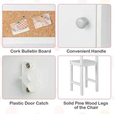 Costway Kids Desk And Chair Set Study Writing Workstation With Bookshelf & Bulletin Board