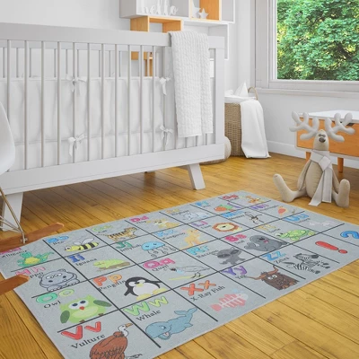 Versatile Floor Rug in Playful PatternsA great addition to any home, this flat-weave learning rug for kids rooms lends itselfto multi-room use, perfect for the playroom, classroom, nursery, or bedroom. Withquality materials paired with the latest technology in printing, our rug will complement allinterior designs by adding playful patterns in bold and colorful prints.  Product Details: