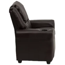 Don’t forget about the kiddos, fur babies included, when looking for child-sized seating. Young kids will enjoy the comfort that adults experience on this comfy recliner. This plush recliner comes with a built-in headrest, footrest, and a cup holder to free up little hands and help prevent spills. Cats and small dogs can also curl up on this push-back recliner and the cup holder can double as a treat cup for rewarding your pets good behavior. Kids can enjoy watching tv, playing games or reading in this adorable recliner which keeps them occupied in comfort. Cleanup is a breeze with the vinyl upholstery that wipes clean with a water based cleaner and is durable around active children. With a solid hardwood frame this kids recliner holds up to 90 pounds and includes a safety feature that prevents the seat from reclining until the child is seated and the ottoman is pulled out one inch. This child-sized reclining chair assembles in less than 10 minutes with the included step-by-step instructions and will quickly become your child’s go-to chair. Add this upholstered recliner to your living room, playroom, or child’s bedroom.