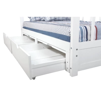 Twin Over Full Bunk Bed With Trundle, Built-in Desk, Three Storage Drawers And Shelf-ModernLuxe