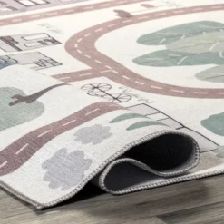 Say hello to your little one’s new oasis! Perfect for a nursery, playroom, or any area needing some fun, this graphic machine washable area rug features a fun pattern that is sure to create smiles. The luxurious composition offers a soft texture under foot. Get the look of a one-of-a-kind rug, in materials that are durable and ready for wear and tear! To clean, simply roll up and place in your washing machine with cold water. Whether it’s playtime with the kids or reading a story, this area rug captures it all. Enjoy the rich interplay of stunning color and incredible texture. Start enjoying your space with our pet-friendly and easy to clean area rugs.