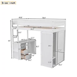 Wood Loft Bed With Wardrobes And 2-Drawer Desk With Cabinet-ModernLuxe